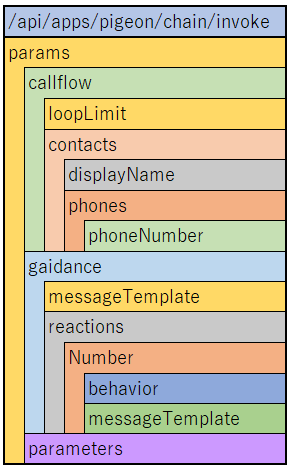 POST /api/apps/pigeon/chain/invokeのJSONフォーマットについて
