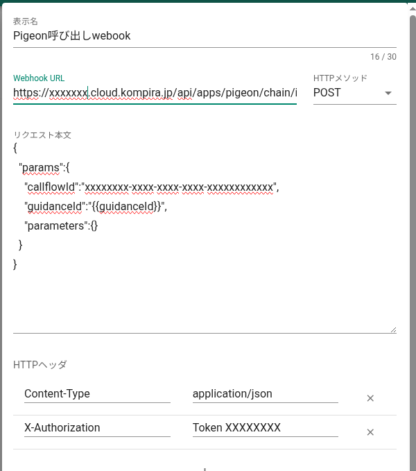 設定例は以下のようになります。- Pigeon の API 呼び出しで