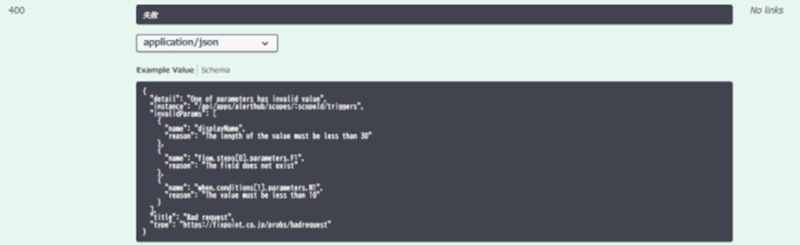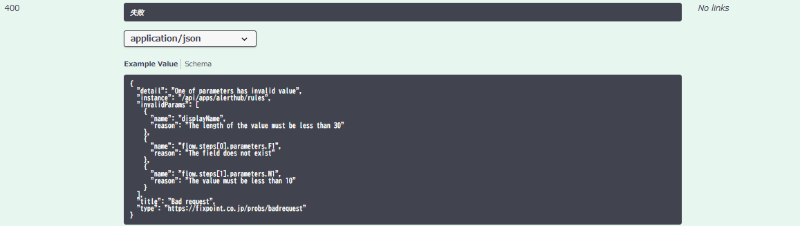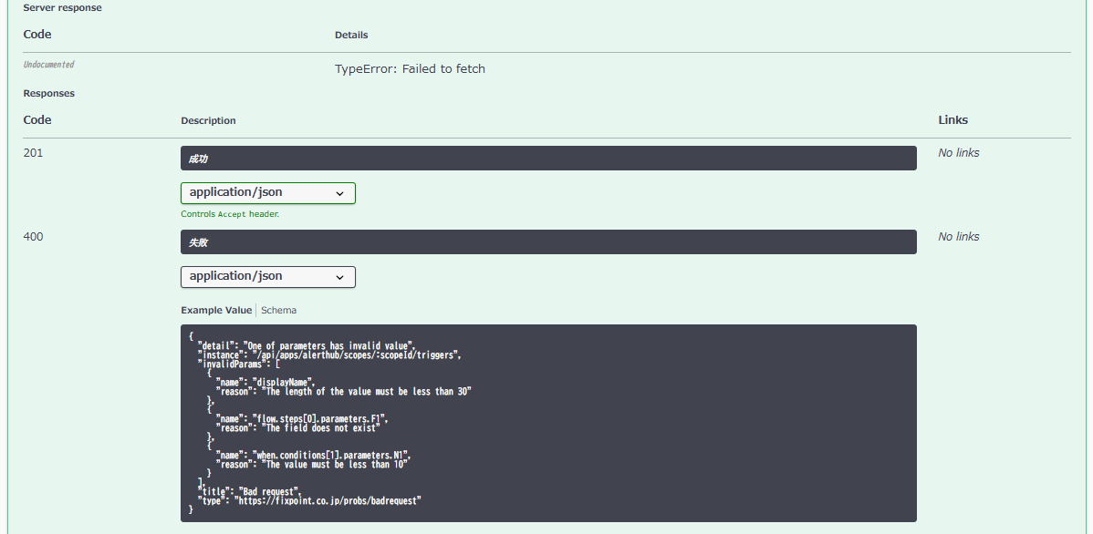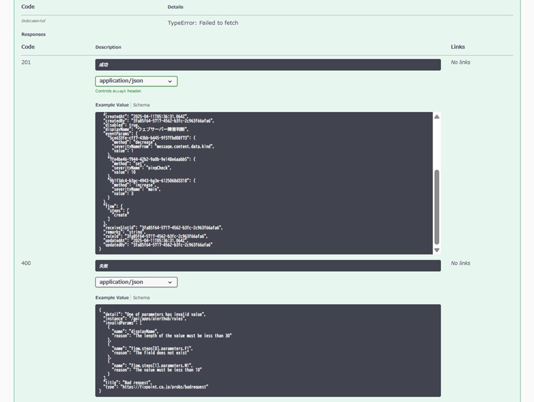 Response以下に記載されている201や400は解説のためのドキュメントであり、