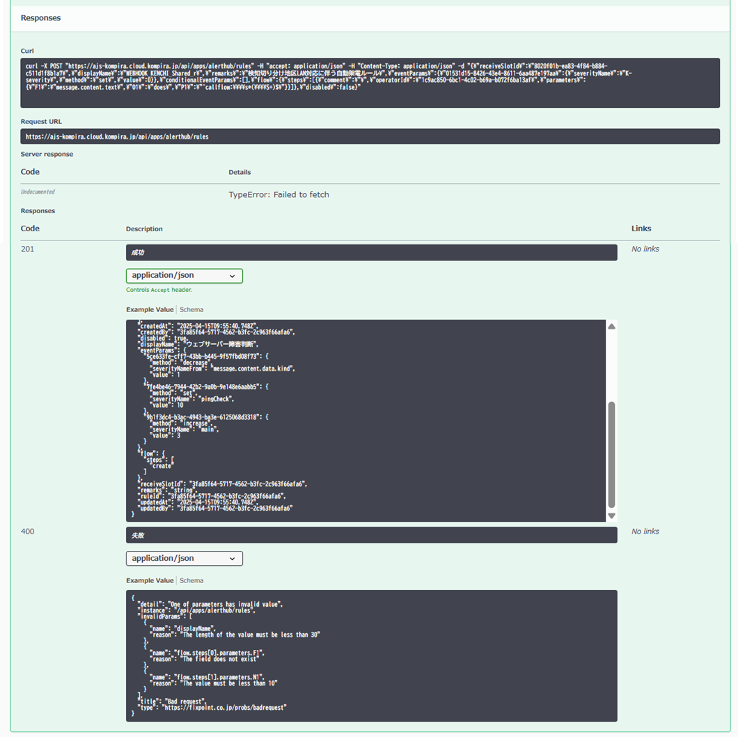 ルールの追加は完了しているはずなのに、その後400が帰ってきている認識です。