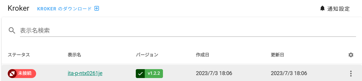 調査をしたところ、Krokerの接続ステータスが「未接続」となっていることを確認いたしました。