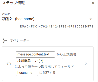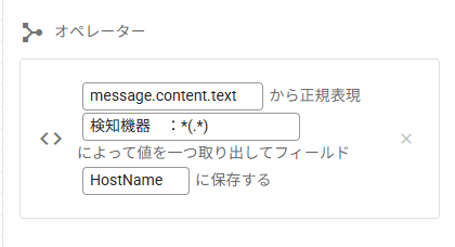 ・ランブックにて、以下のようにホスト名をフィールドに取り出す設定をしています。