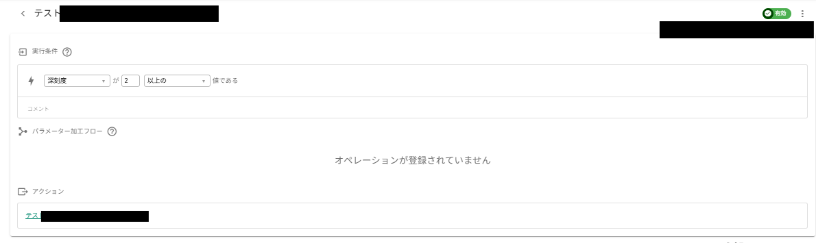 以下①の場合(深刻度が0→1→0)、障害アクション・復旧アクションともに動作なし。(実現したい動作なのでOK)