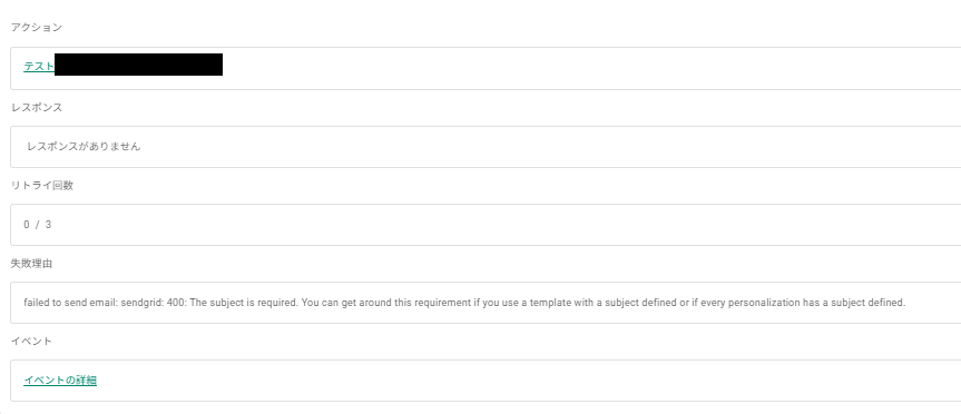 Webhookを使用した場合にのみ、メール通知が失敗する状況です。