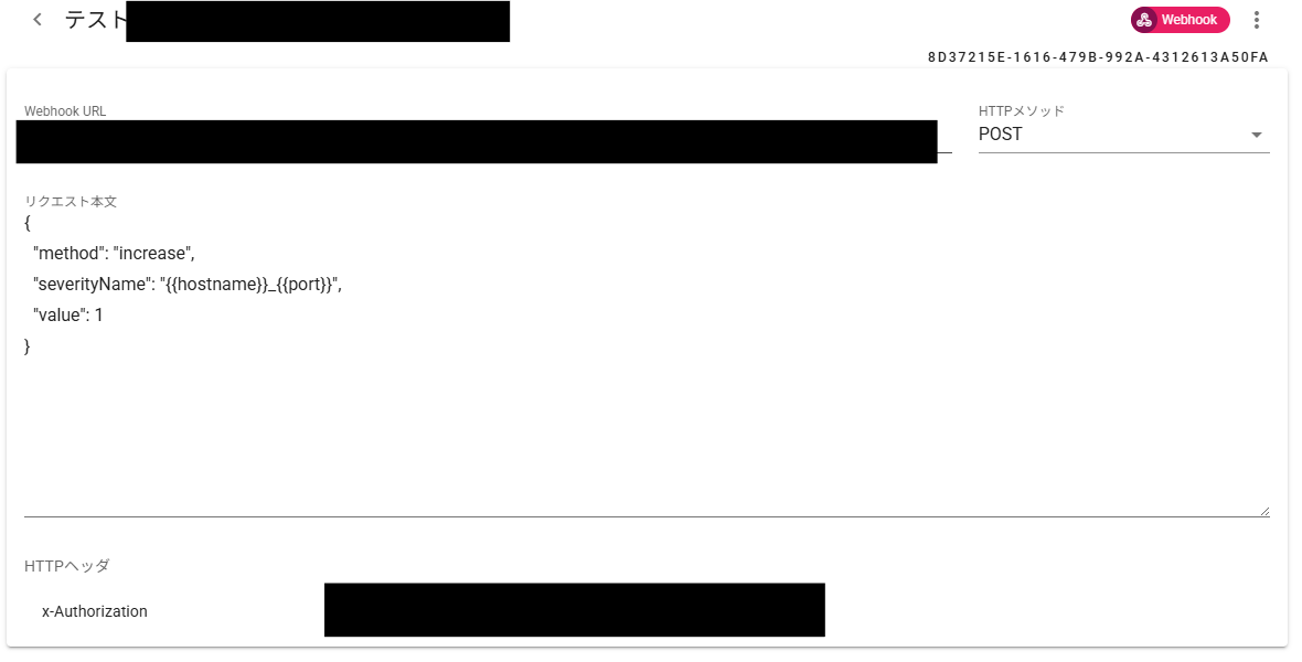 Webhookのアクションを1つ作成しておきます。設定としては以下の画面の通りとします。