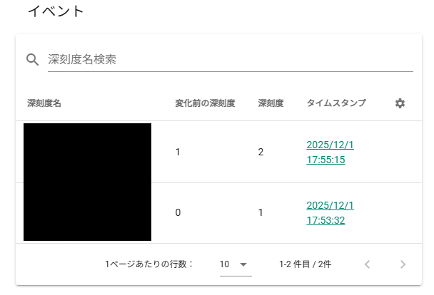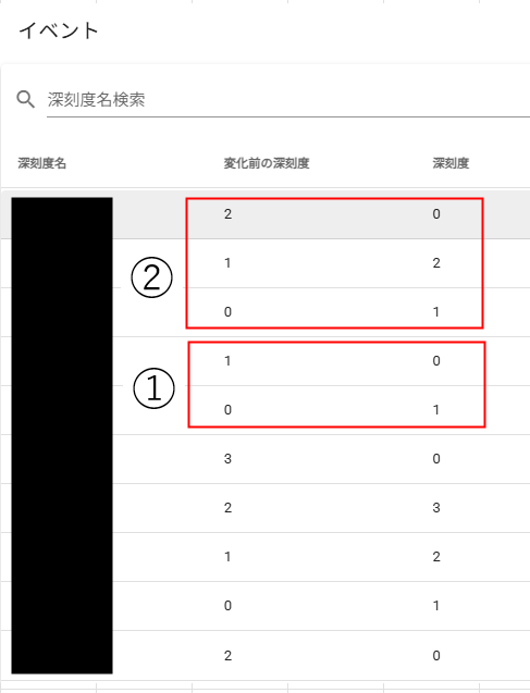 ・②で作成した深刻度名